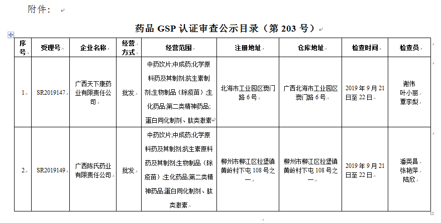 附件:药品GSP认证审查公示目录(第203号)