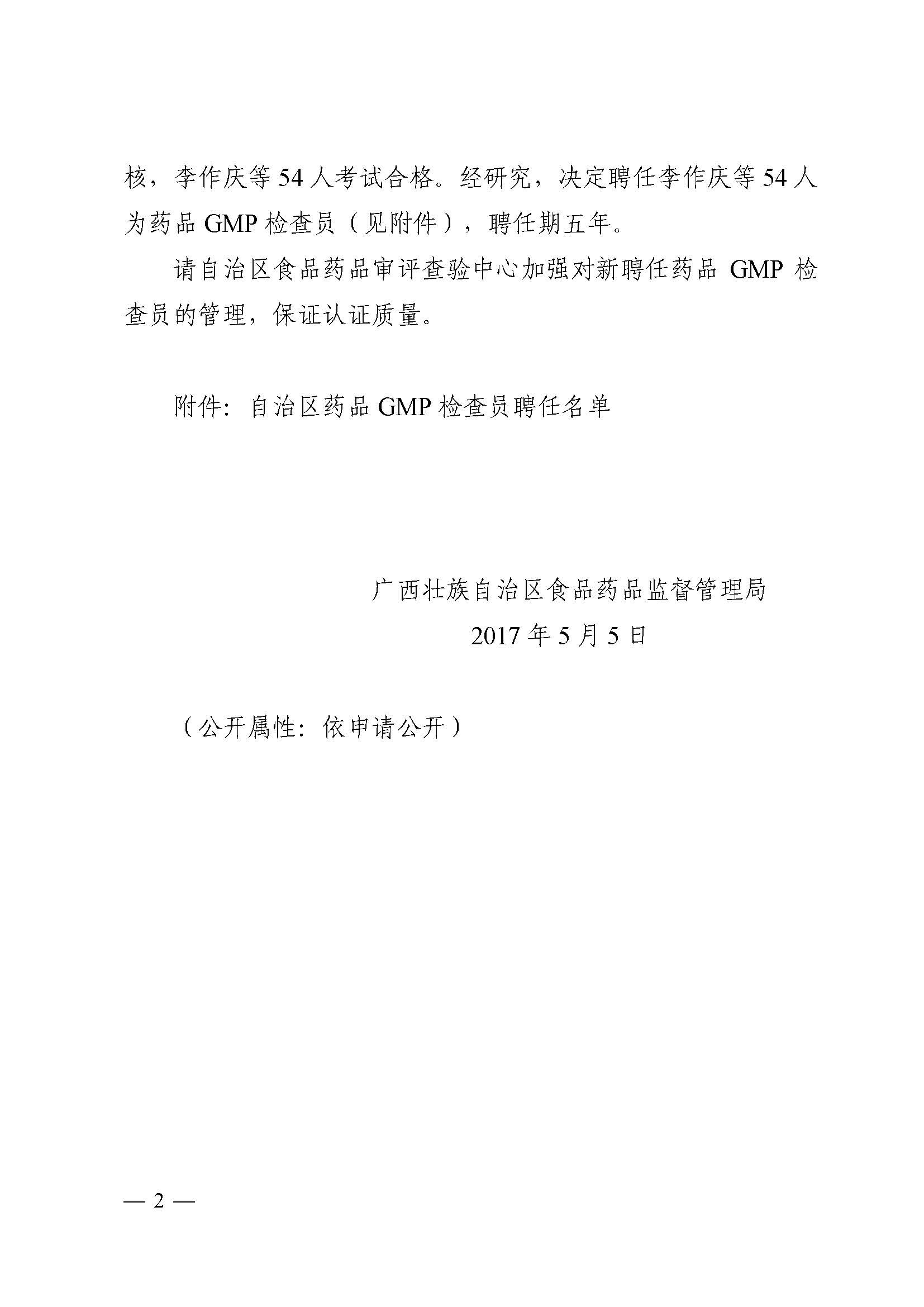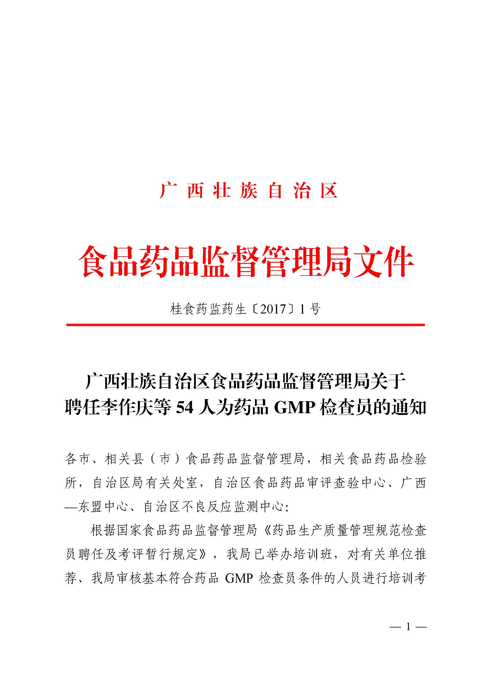 关于聘任李作庆等 54 人为药品 GMP 检查员的通知
