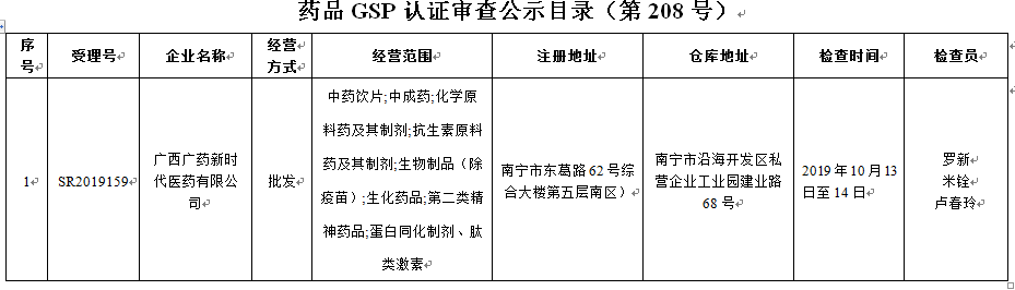 附件:药品GSP认证审查公示目录(第208号)